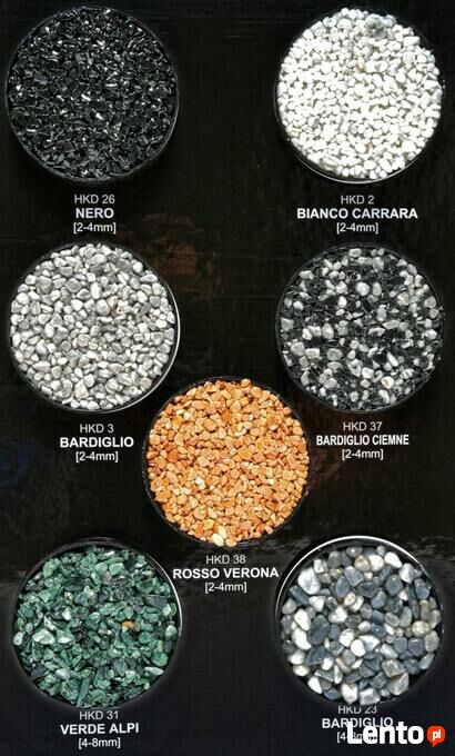 Witam oferujemy państwu sprzedaż kruszywa marmurowego cena dotyczy 25 kg kruszywa ,myte, suszone ,otoczaki do połączenia z żywicą poliuretanową . Zastosowanie do Kamiennych Dywanów do powierzchni poziomych jak i pionowych . Posiadamy 37 kolorów w ofercie Tarasy ,Balkony ,Schody ,Podjazdy,Korytarze, Sauny, Biura , Kuchnie ,Garaże.Aukcja dotyczy kruszywa HKD 32 DMX (4-6 mm) - 25 kg